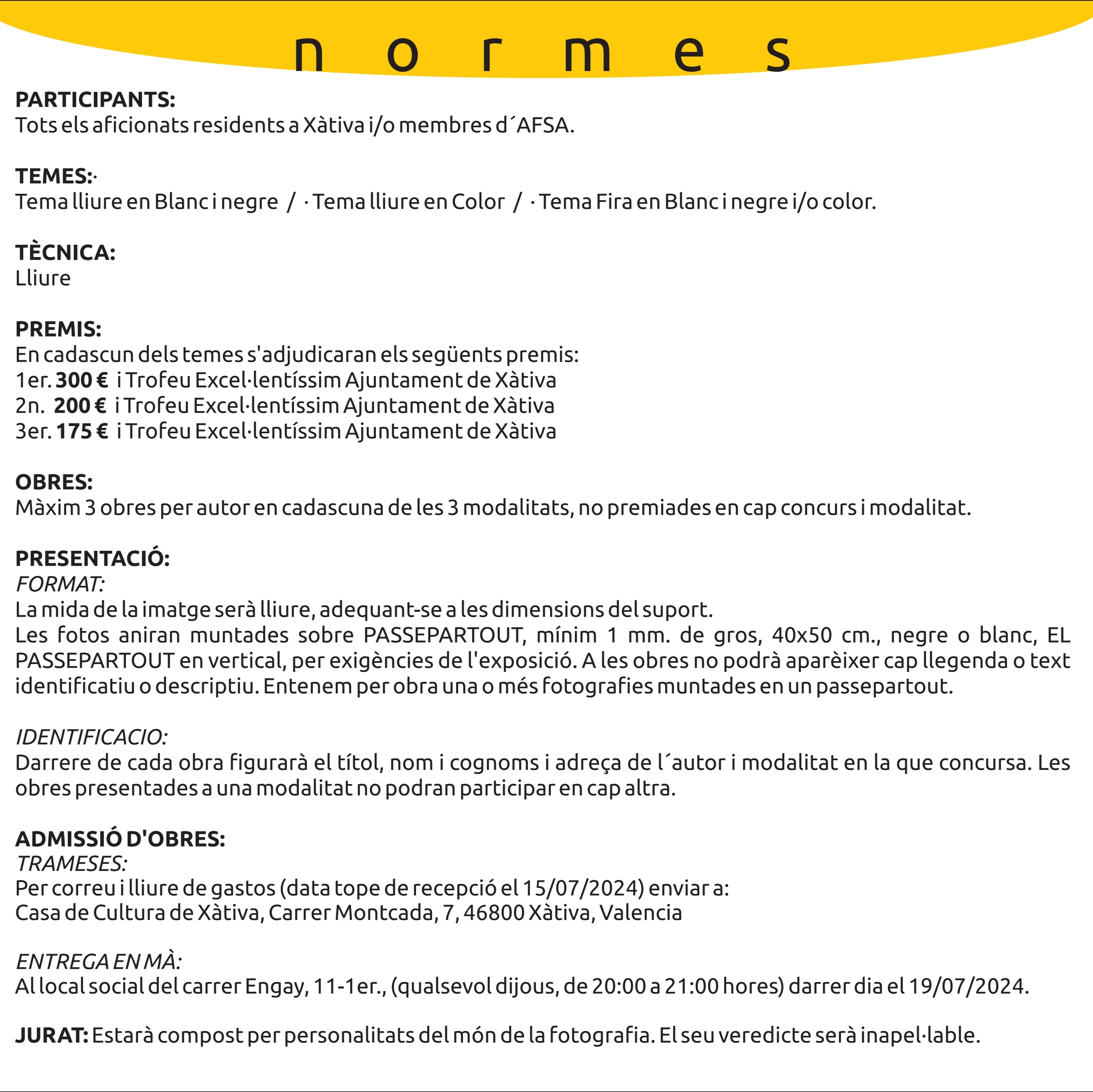 Resultados de 2024 del Salón Nacional de Fotografía Ciutat de Xàtiva, con el patrocinio del Ayuntamiento, organizando por AFS de forma ini...
